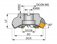 Čelní fréza pro těžké hrubování, Kr=60°, PRAMET, 125B07R-F60SB22X